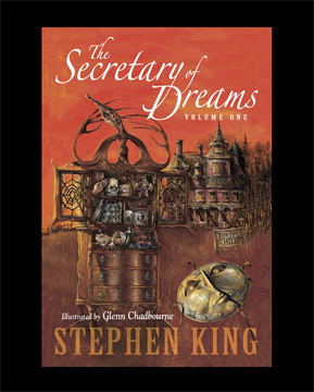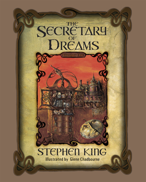 After speaking with Chadbourne and receiving King's enthusiastic permission, we created t-shirts featuring stunning full-color reproductions of the cover art & design for each of the three editions of The Secretary of Dreams! These t-shirts were made by the same company that produced our Halloween t-shirts and the quality is excellent!